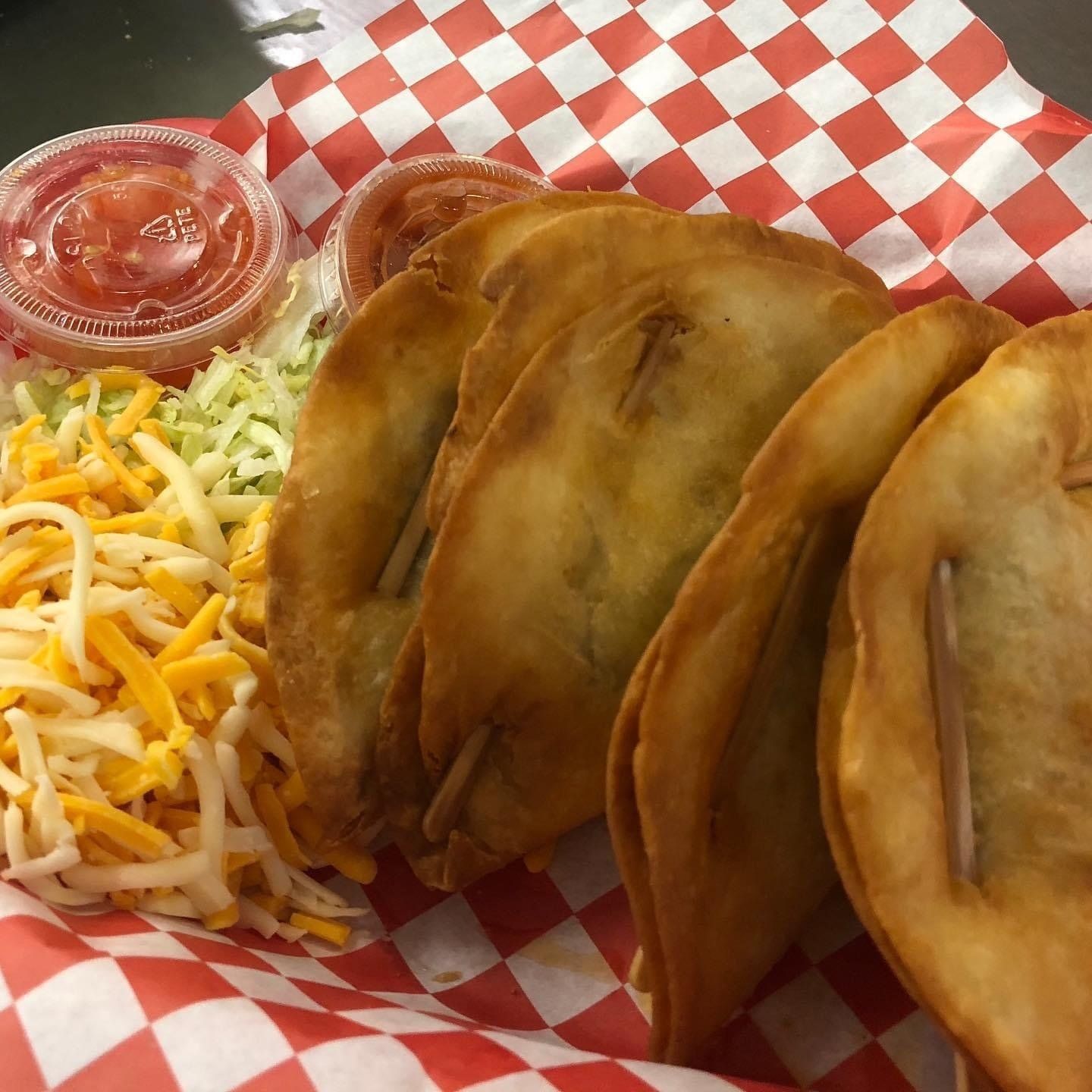 Lettuce, black olives, onions, mozzarella, cheddar jack cheese with house made three deep fried tacos on top served with salsa and sour cream